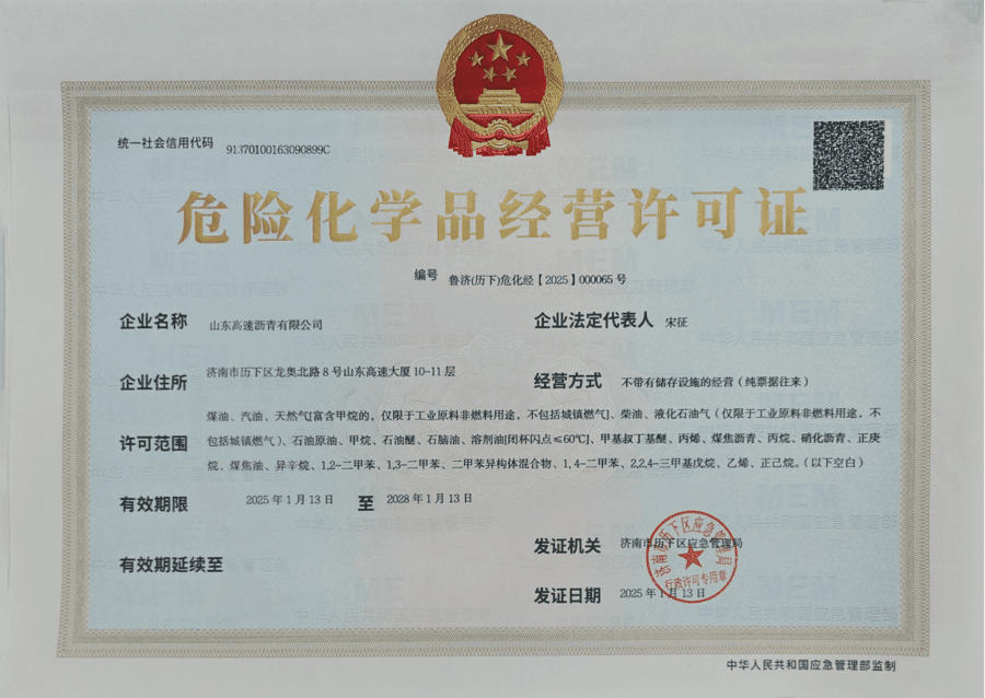 山東高速瀝青有限公司是由山東高速新材料集團、美國海瑞集團共同出資組建的中外合資企業(yè),位于山東省濟南市,注冊資本8.5億元人民幣,下轄8家權(quán)屬單位,2家分公司。