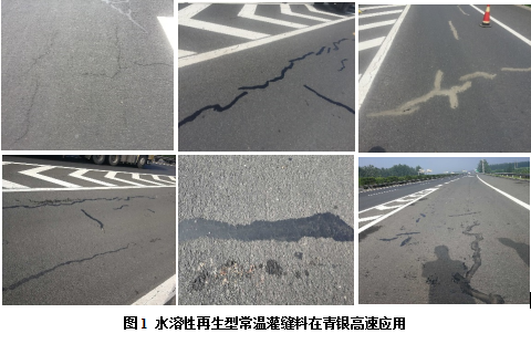 2.水溶性再生型常溫灌縫料固含量高(66%~70%)、粘度大,解決了普通冷灌縫乳化瀝青施工后裂縫密封不實(shí)的問(wèn)題;